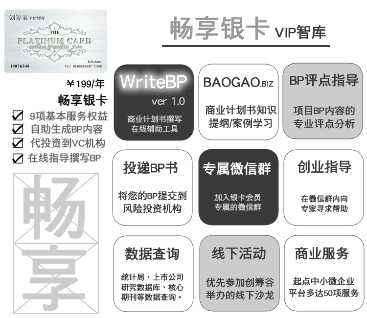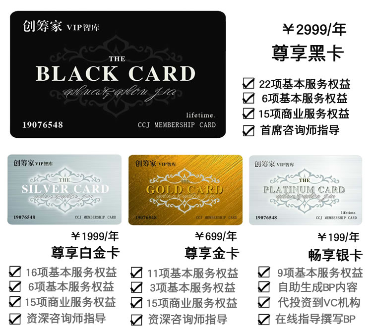 創(chuàng)籌谷VIP智庫會員卡--銀卡/金卡/白金卡/黑卡